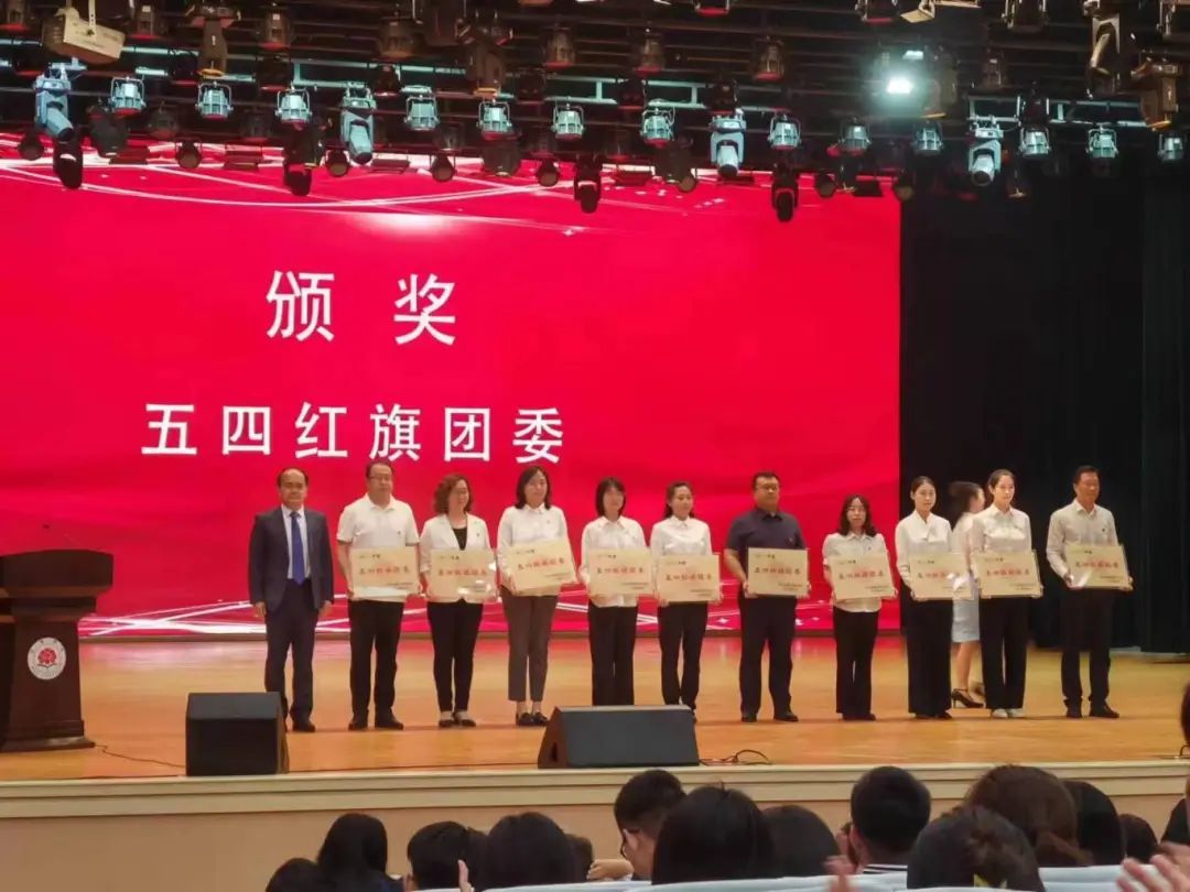 大会在短片《高举旗帜跟党走,挺膺担当向未来》中拉开了帷幕,校党委委员、副校长曲相艳同志宣读《关于表彰2023年度共青团工作先进集体、先进个人的决定》,校党委书记黄富峰为获得”五四红旗团委“的集体颁奖。