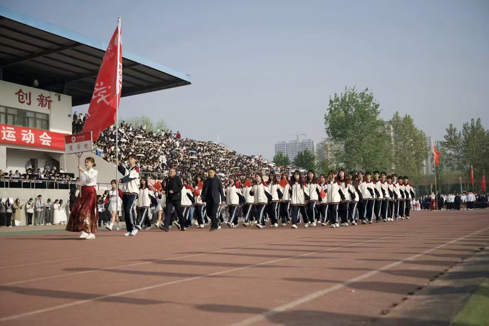 阳光璀璨,和风轻拂,春季运动会盛大开幕。伴随着鼓舞嘹亮的旋律,伟德国际victor·1946源自学子在党委书记尹鹏、党委副书记朱贺的引领下,身着统一服装、步调一致。他们排列成整齐方阵、迈着强劲有力的步伐,高喊激昂口号,充分展现出同学们朝气蓬勃、团结奋进的精神风貌。