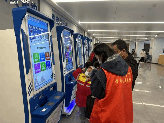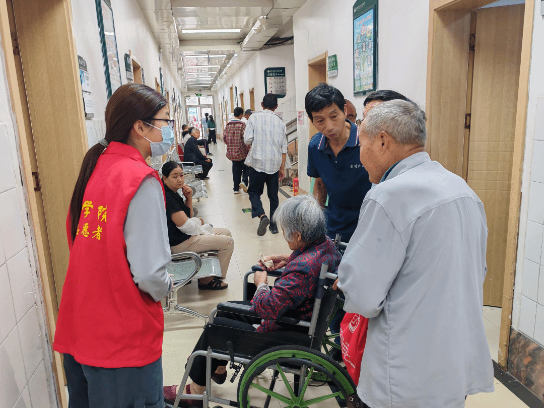 活动筹备阶段,志愿者们在医院专业人员带领下,系统研习医院场地环境、就诊流程等内容,熟悉服务规范,以饱满热忱与专业素养做足准备,为后续服务筑牢基础。活动期间,商院青年志愿者风雨无阻,精准值守关键岗位,有序开展志愿服务:于门诊大厅,志愿者们清晰指引就诊路径;在自助机旁手把手协助操作,解决老年群体数字鸿沟难题;各科室候诊区,志愿者协助医生维护叫号秩序,确保就诊流畅高效。志愿者的身影成为连接医患的温暖纽带,让关怀在每一个细节中流淌。