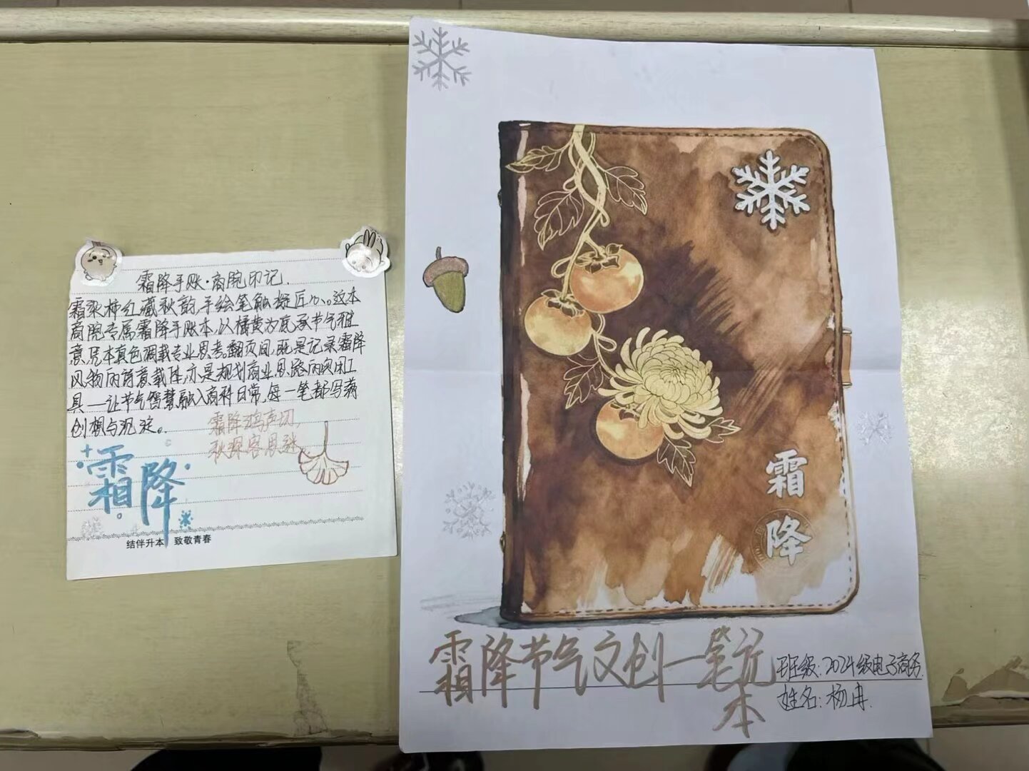 本次活动汇聚了众多创意,同学们在创作中不仅深化了对霜降节气文化内涵,厚植了文化底蕴,还激发了创新实践能力,增进了交流协作。