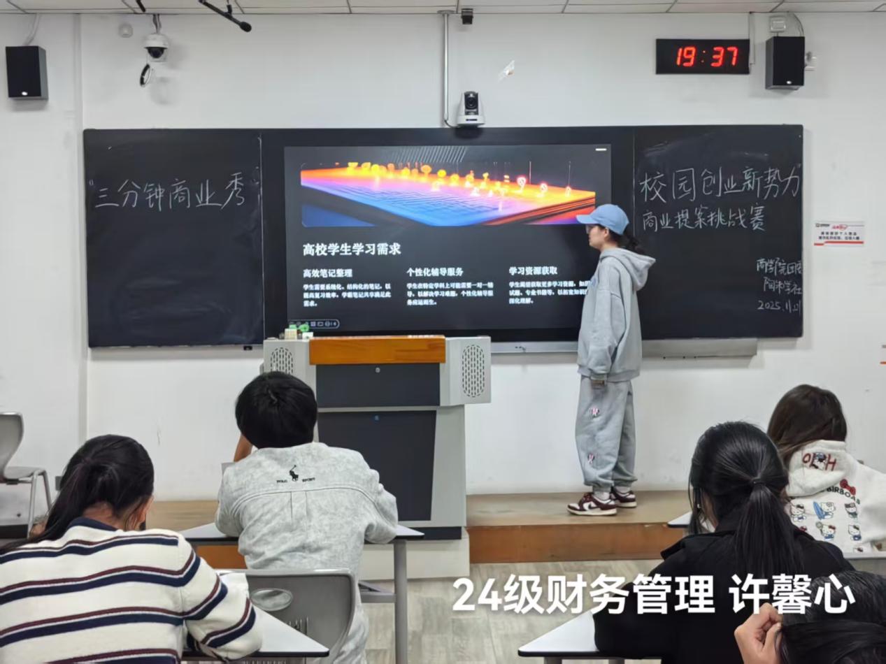 本次活动以个人形式开启竞技,每位参赛选手均以言简意赅的PPT为核心载体,从日常消费、职场协作等生活场景,或是AI赋能、绿色经济等行业趋势中精准挖掘创作灵感。他们在梳理商业逻辑的过程中,不仅深入剖析了目标市场的供需痛点与竞争格局,更详细规划了从资源整合、用户获取到盈利变现的完整运营路径。PPT内容详实且数据支撑有力,既展现出选手们严谨细致的创作态度,更传递出他们对自身商业提案的深度思考与扎实认知。