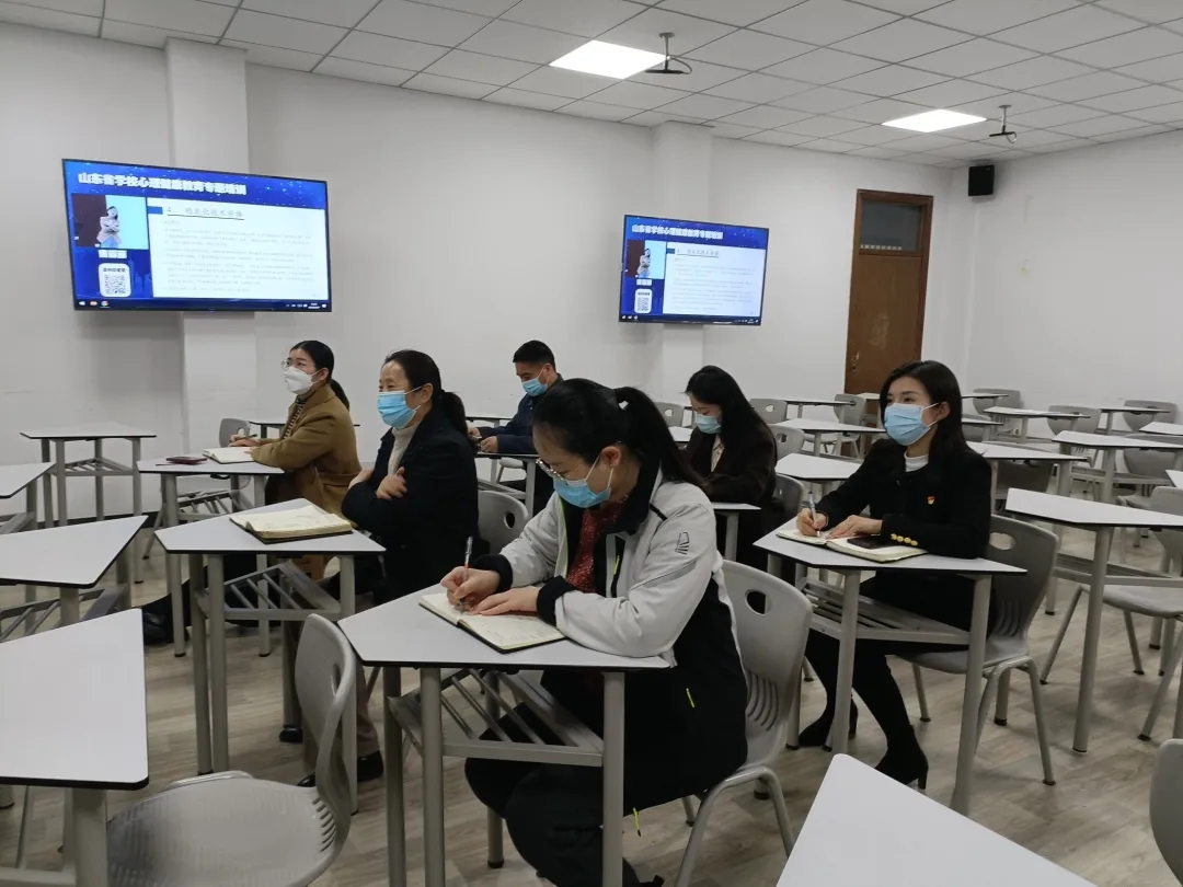 该培训采用线上直播的方式进行,心理健康专家老师陈光辉、赵卫国、曹丽丽,重点围绕疫情防控背景下的学生心理健康维护、疫情防控期间学校心理危机干预工作流程(含伦理)、学生心理危机的快速反应等方面进行讲述。陈光辉教授指出学校应重点关注特殊群体,对家长提出的家庭教育问题多倾听、多理解,帮助家长寻找解决之道等相关心理健康注意事项。老师们认真聆听并进行笔记记录。在结束之后,老师们纷纷表示通过培训,对有心理健康问题的学生有了更好的了解,也学习了如何关心照顾有心理健康问题的学生。