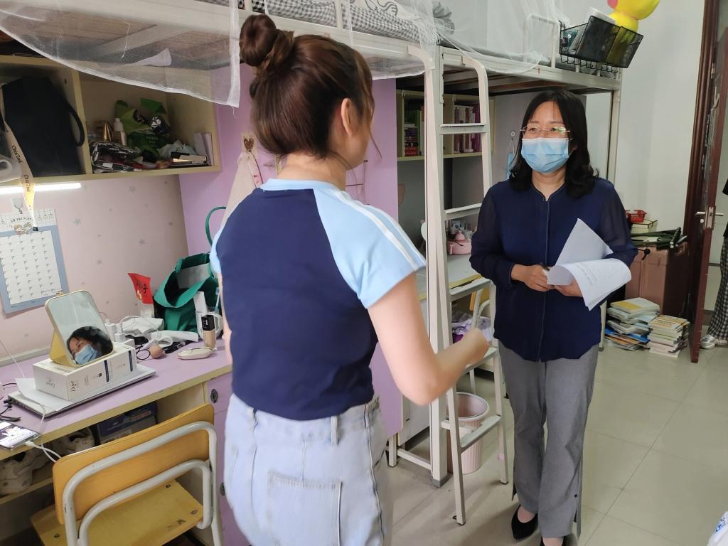 在走访过程中,领导老师们对宿舍生活环境进行安全隐患排查,强调安全重要性。全方位了解近期学生在校学习生活状况,并针对近期学生反映情况,耐心向学生解疑释惑,叮嘱同学们要严格遵守学校疫情防控期间校园管理工作要求、做好疫情防控常态化下自我管理和个人防护,养成良好的生活卫生习惯,注意身心健康。