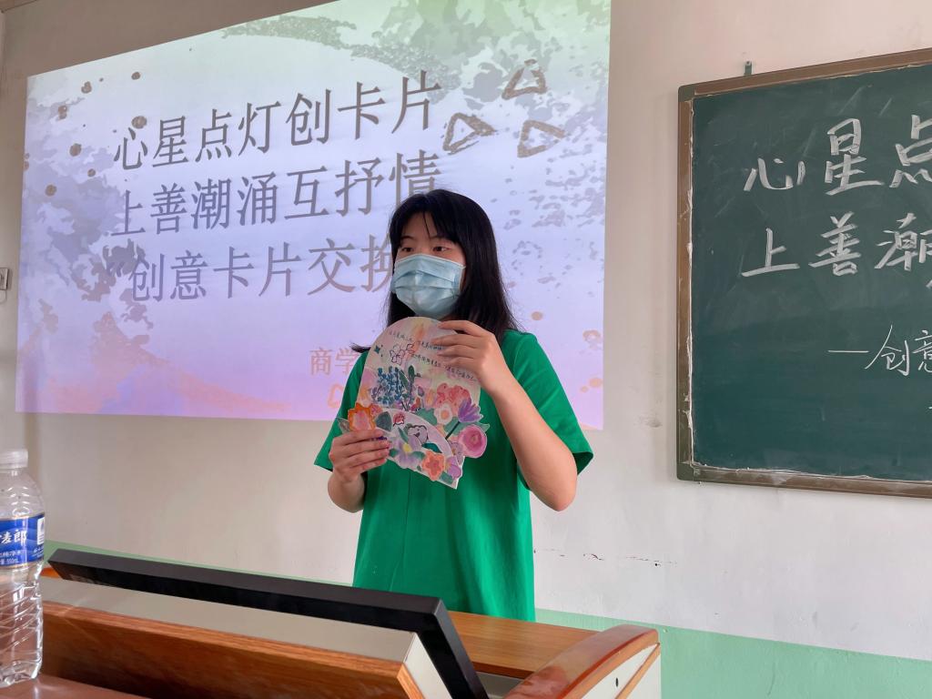 此次活动由2021级市场营销专业李淑琪同学主持,其中2020级市场营销专业的王晨曦同学通过绘画玫瑰花表达了对同学的关怀,与同学之间的深厚友谊。2021级大数据与会计专业的王茜同学通过手工制作用图画与文字相结合,画幅色彩鲜明将爱和温暖传递给了身边的每一个人。