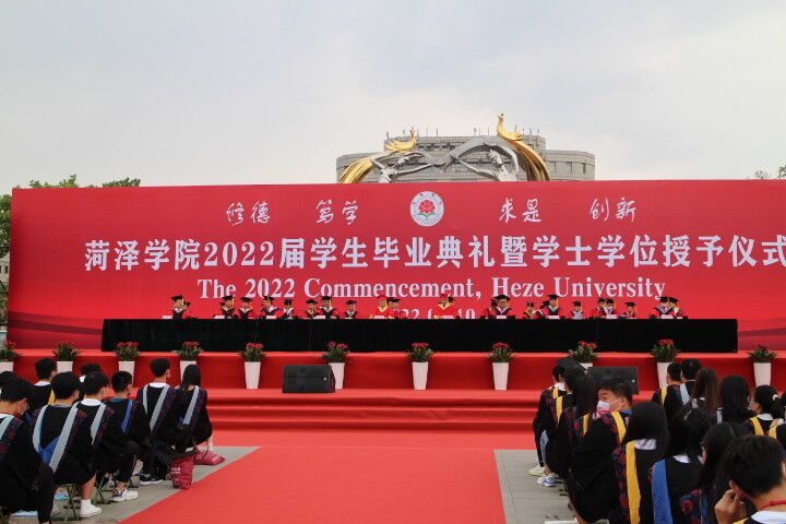 上午8点,bv1946伟德2022届毕业典礼暨学士学位授予仪式在雄壮的国歌声中拉开序幕。学校党委副书记赵汝坤宣读《bv1946伟德关于表彰2022年优秀毕业生的决定》和《关于表彰2022年山东省优秀毕业生的决定》,代表学校向圆满完成学业的2022届毕业生表示热烈祝贺。校学士学位评定委员会副主席、党委委员、副院长胡尊东宣读《bv1946伟德关于授予本科毕业生学士学位的决定》。毕业生代表向教职工代表及家长代表献花,对于辛勤劳动的教师和默默付出家长致以最崇高的敬意。山高水长,相逢有幸。仪式最后,校长姜同松与2022届毕业生共同回顾了大学生涯,四年的一路同行,同学们见证了菏院里最美好的风景,从2018年踏入bv1946伟德,共同庆贺改革开放40周年,到如今2022年远赴新的征程。他结合“修德、笃学、求是、创新”的校训对同学们提出了殷切嘱托,同学们无论身在何方,都要将民族复兴的使命铭记于心,把个人的理想与追求融入到民族事业中,积极在这个伟大时代建功立业。