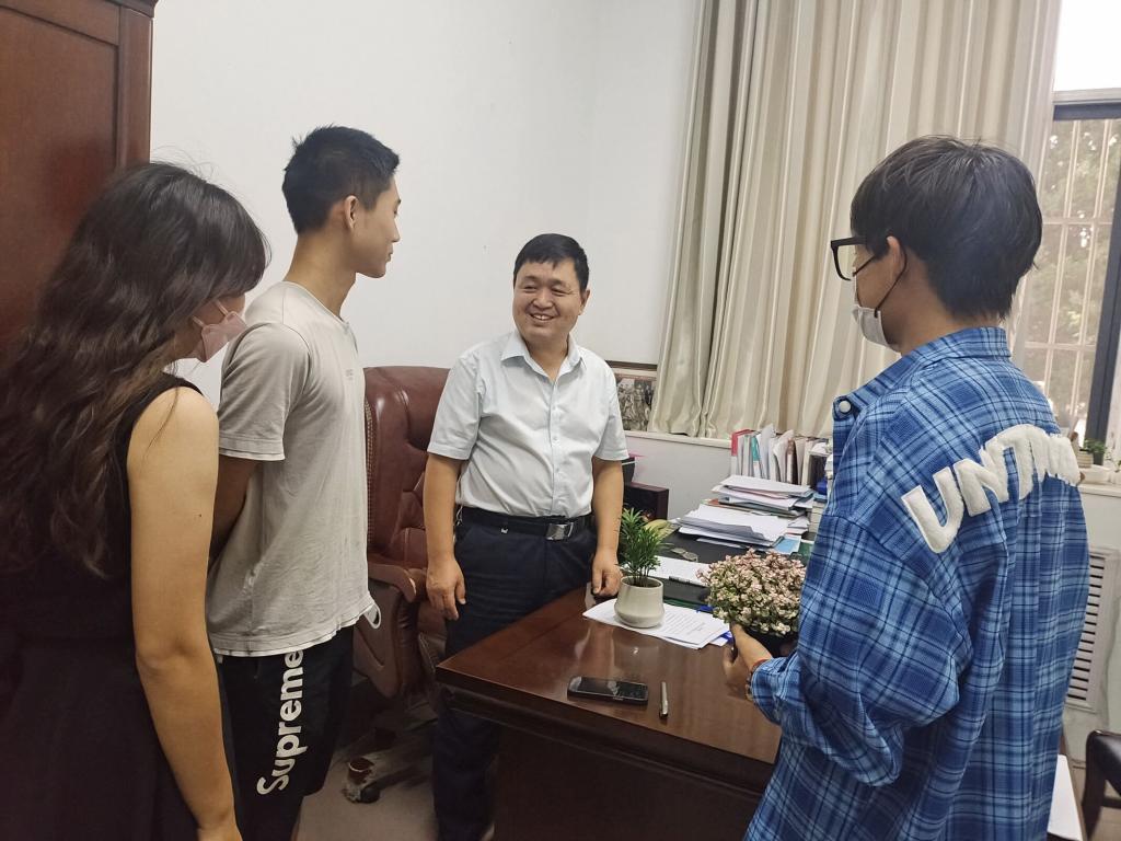 以21财务管理(夏考)沈玥、21经济学夏鑫岳、21物流管理王保龙、21金融工程林涛为商院学子代表,向伟德国际victor·1946源自领导老师表达感恩之情,每一位老师收到同学们的祝福与鲜花都流露出感动与欣慰的目光,老师们亲切地与同学交谈,嘱咐同学们要在即将到来的中秋佳节向父母及时表达思念之情。领导老师们的深情寄语和殷切勉励令同学们深受鼓舞、倍感亲切。