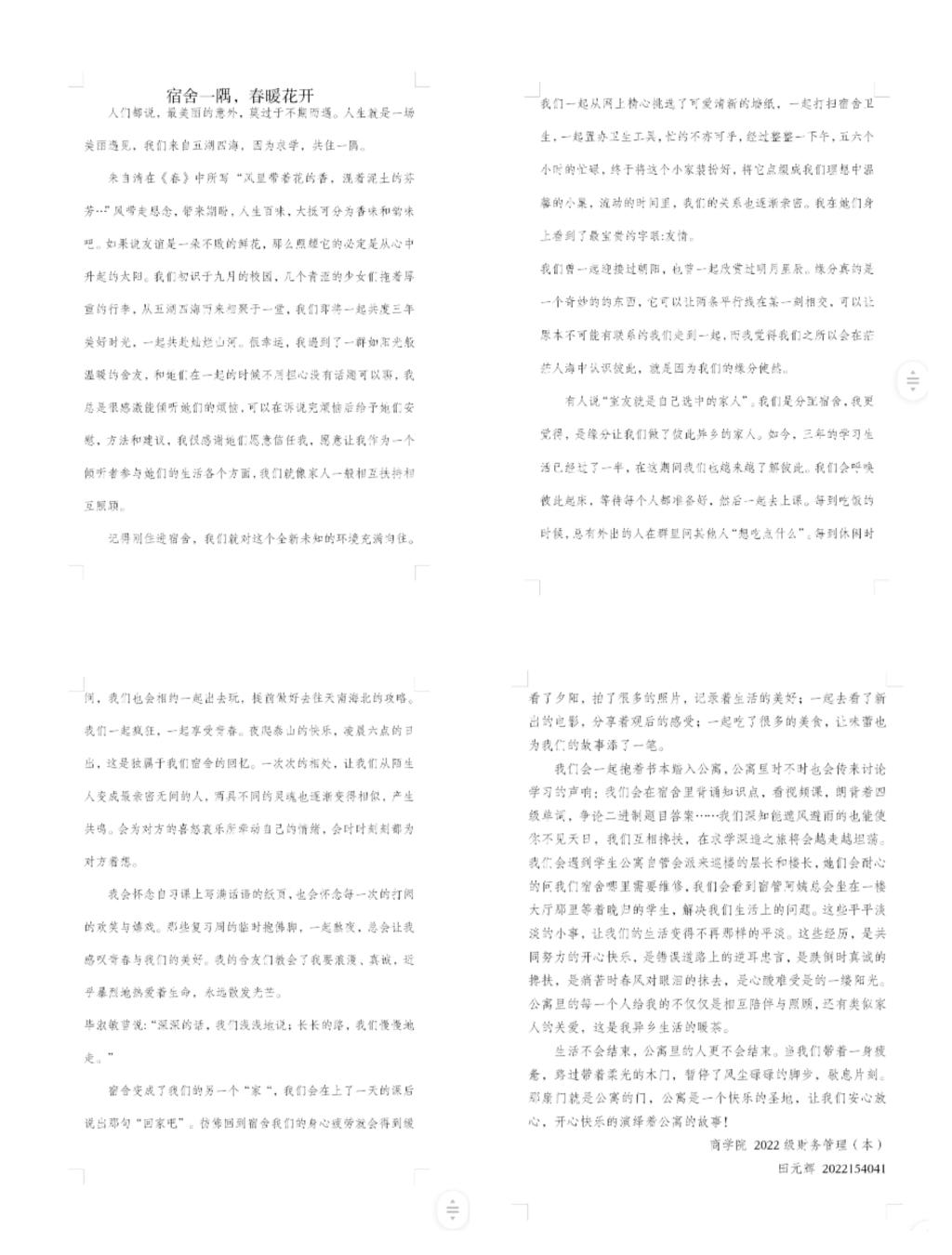 在此次活动中,同学们聚焦主题,书写了发生在公寓里的真实故事,内容丰富、积极向上,记录了丰富多彩的大学生活和互帮互学、共同进步走向成熟的宿舍故事,充分体现学生公寓“第一社会、第二家庭、第三课堂”的重要作用,展现新时代青年积极向上的形象和风采。