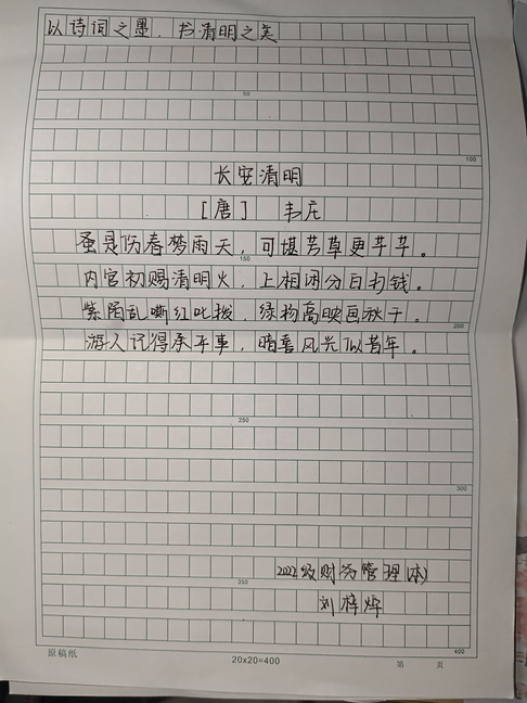 为增进学生对中华优秀传统文化的理解,激发学生对书法艺术的热爱与兴趣,3月28日,伟德国际victor·1946源自举办“以诗词之墨,书清明之美”清明诗歌书法大赛。伟德国际victor·1946源自学生积极参加此次活动。