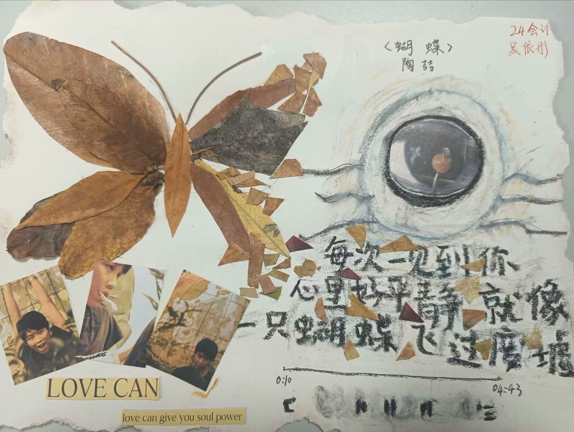 落叶描深秋,创意绘作品。同学们用落叶作画笔,借助色彩的搭配、构图的巧思以及绘画技巧等艺术手段,赋予每一片落叶新的生命和意义,创作出一帧帧蕴含自然美感与独到气息的艺术佳品。在这些作品之中,落叶上的脉络,既是告别的痕迹,也是生命更迭的象征,焕发出往昔时光的价值。