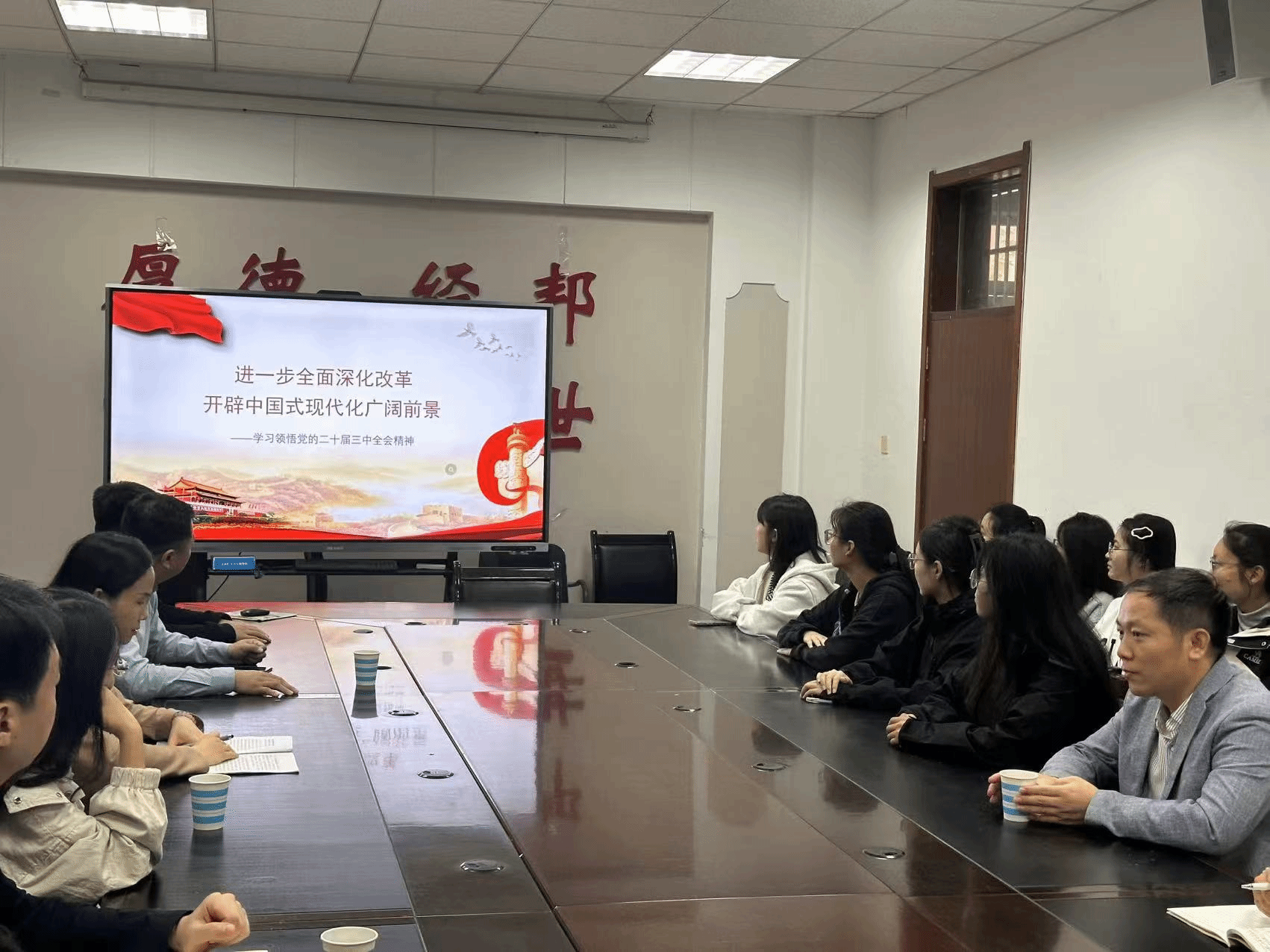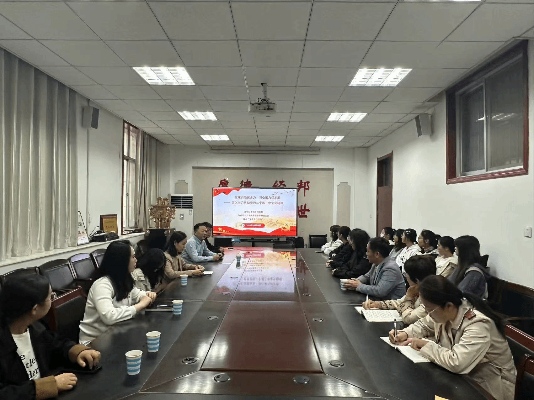 为进一步深入学习贯彻党的二十届三中全会精神,认真落实伟德国际victor·1946源自党委提出的“注重工作创新,采取多种形式开展主题活动”要求,管理系党支部联合马克思主义学院原理教研部党支部于10月18日上午在老办公楼119会议室开展了“党建引领聚合力 凝心聚力促发展—深入学习贯彻党的二十届三中全会精神”主题党日活动。