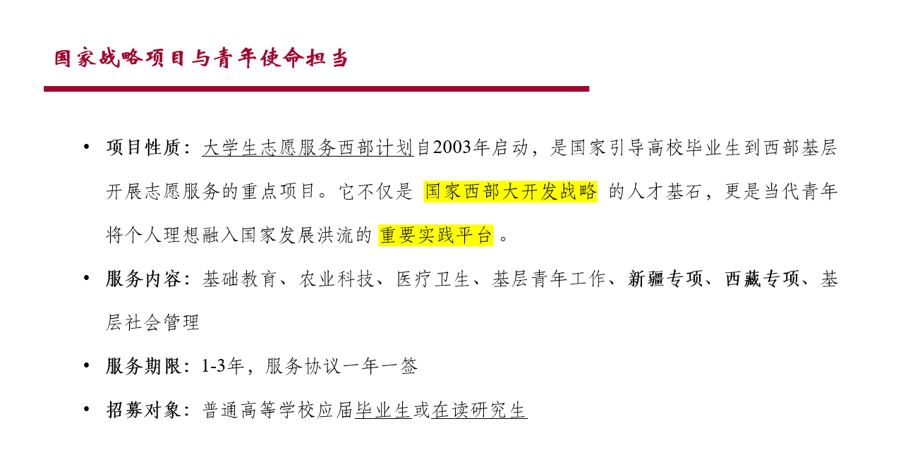 本次宣讲会,不仅让同学们对“西部计划”有了更加全面深入的认识,更是一堂生动的爱国主义教育课,进一步厚植了青年学子的家国情怀,强化了使命担当,期待更多有志青年积极响应国家号召,奔赴西部、扎根基层,在实干中实现人生价值,让青春在祖国和人民最需要的地方绽放出绚丽光彩。
