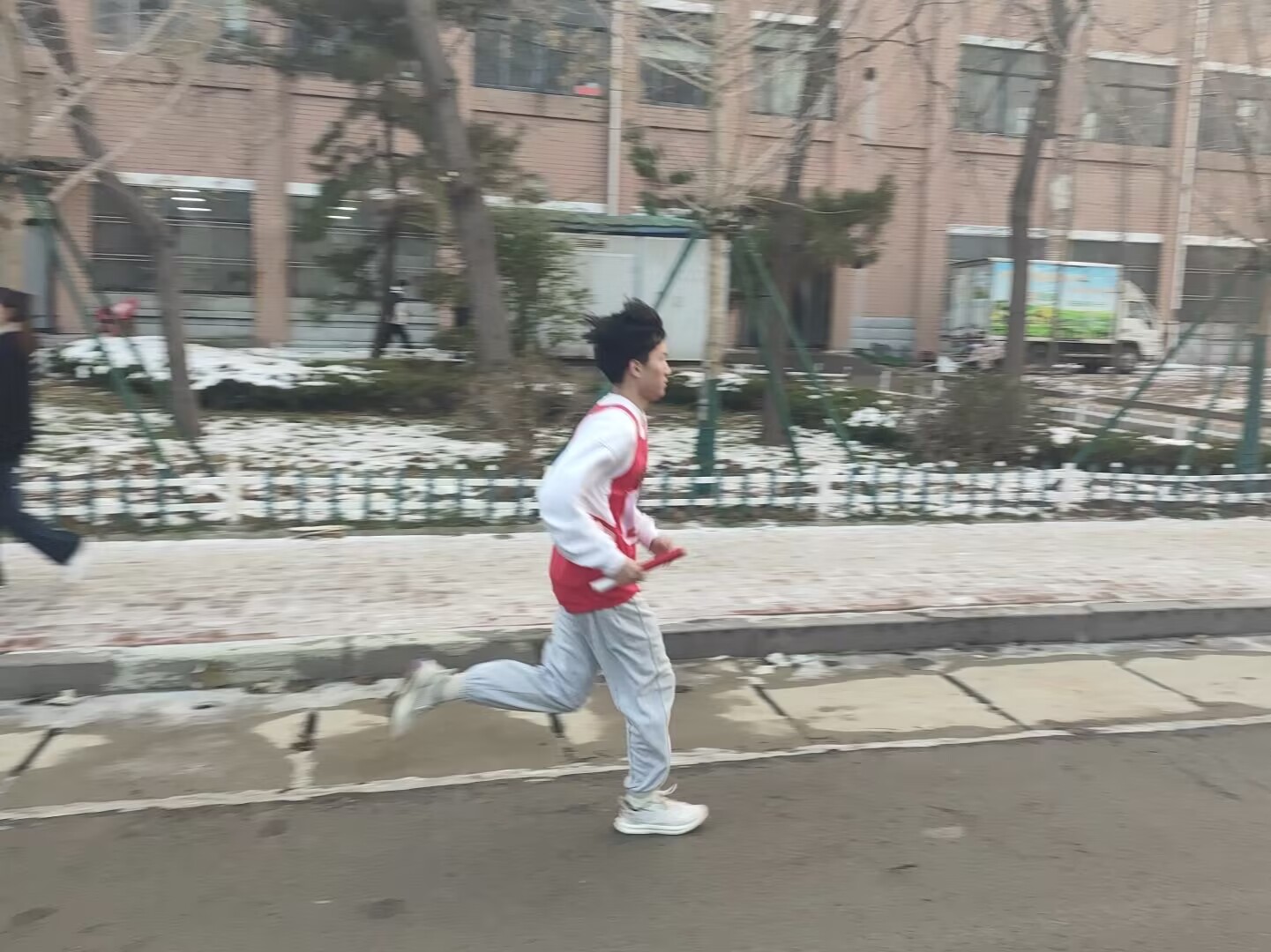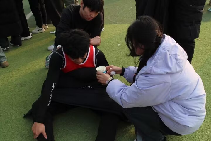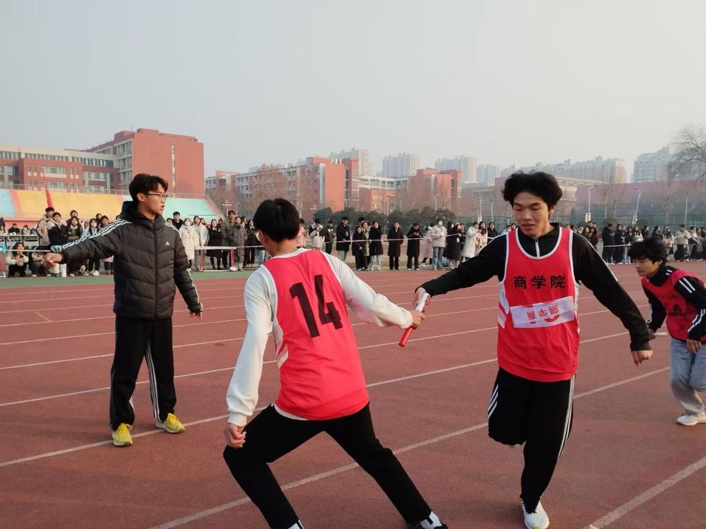 比赛开始前,我院参赛人员为默默地接下来的挑战做好热身准备,拉伸肌肉,调整呼吸。随着裁判的一声枪响,我院第一棒选手跃出起跑线,像离弦的箭一样向前冲去。运动员们互不相让,展现出他们的运动风貌和竞技水平,跑道上尘土飞扬,仿佛海水涨潮一样汹涌而来。学生们站在跑道旁为选手们加油助威,学生会工作人员为他们保驾护航,打气他们的力量拧成一股绳,成为运动员坚持下去的动力和信念。