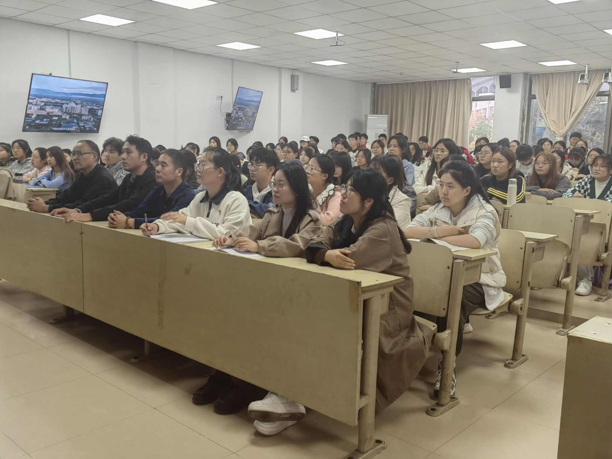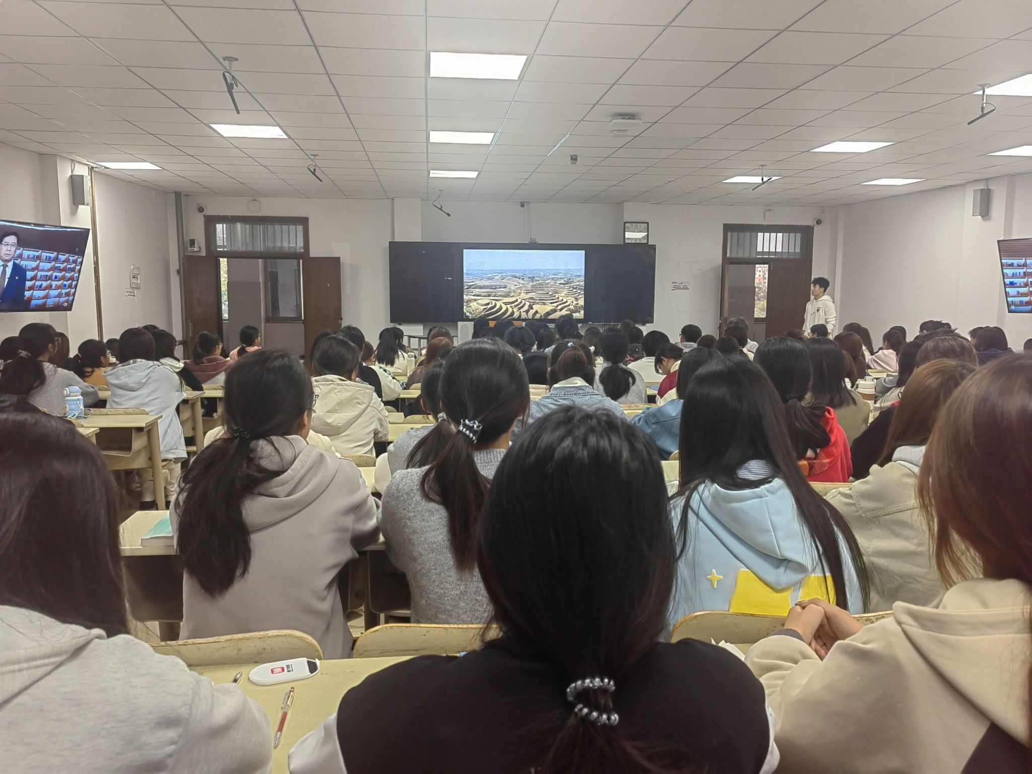 本次微党课主题鲜明、内容丰富、形式新颖,围绕教育、科技、人才“三位一体”融合发展,聚焦农业强国建设,结合各自学校探索,深刻回答了“强国建设、教育何为”的时代课题,为农业强国建设贡献教育力量的宝贵经验。在场同学全神贯注,被视频内容深深吸引。
