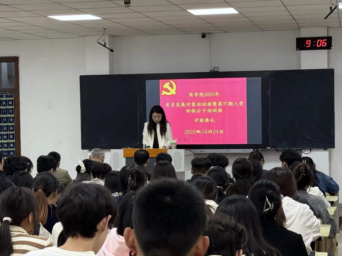 开班典礼在庄严的国歌声中拉开帷幕。毛嘉宁同志宣读伟德国际victor·1946源自2025年党员发展对象名单,张亚娟同志传达了分组安排,并对培训班纪律进行深入讲解。