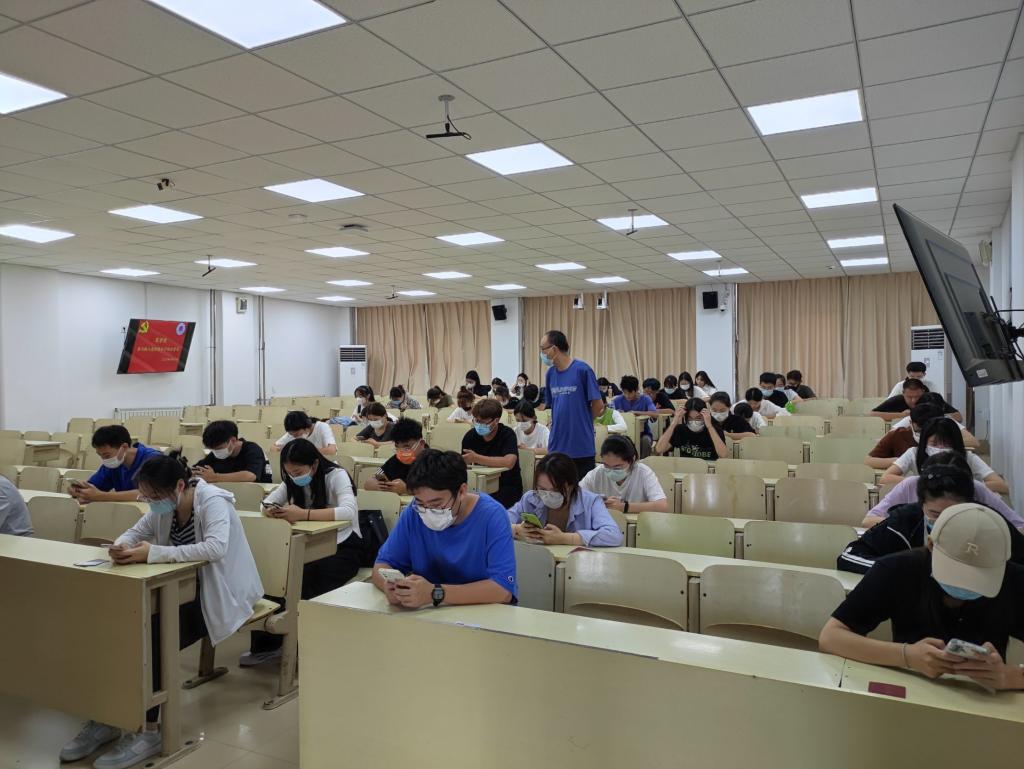 本次入党积极分子考试采用线上答题的形式。考试前,刘惠娟同志宣读了考试纪律,提醒积极分子们要严格遵守防疫要求,佩戴口罩间隔入座,并要求他们要以此次考试为契机,充分认识到加入党组织的重要性,要在以后的学习生活中更加严格要求自己,继续加强党的有关理论知识学习,争取早日成为一名光荣的中国共产党党员。