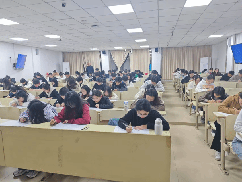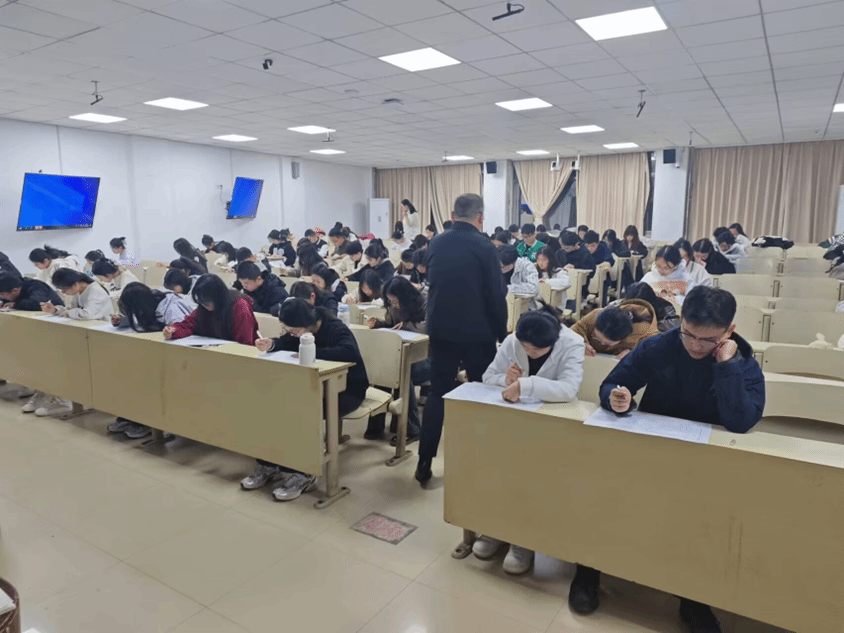 考试伊始,监考人员就考试细则、考场秩序等相关事项进行了强调说明。本次测试采取闭卷模式,涉及选择题、判断题、简答题等多种题型,内容涵盖党章、党史、党的性质等内容。试卷发放后,同学们沉着冷静,认真作答,整个考场秩序井然,体现出同学们严谨的学习态度和高度的纪律性。