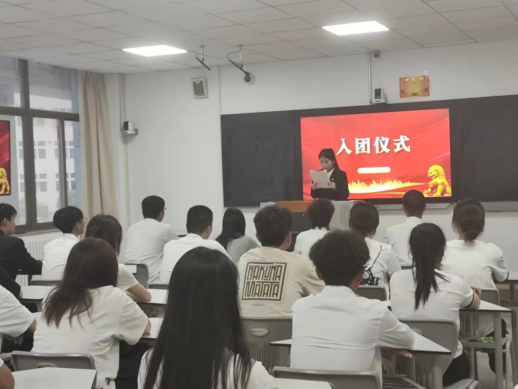 活动进行第六项,张亚娟老师向加入中国共产主义青年团的同学致以热烈祝贺并为他们发放团员证以及团徽,寄望全体团员在党和团组织的坚定引领下,树立理想,志存高远,成为信念坚定的有志青年;勤奋好学,力求卓越,成为才华横溢的有才青年;严格自律,锐意进取,成为勇攀高峰的有为青年。