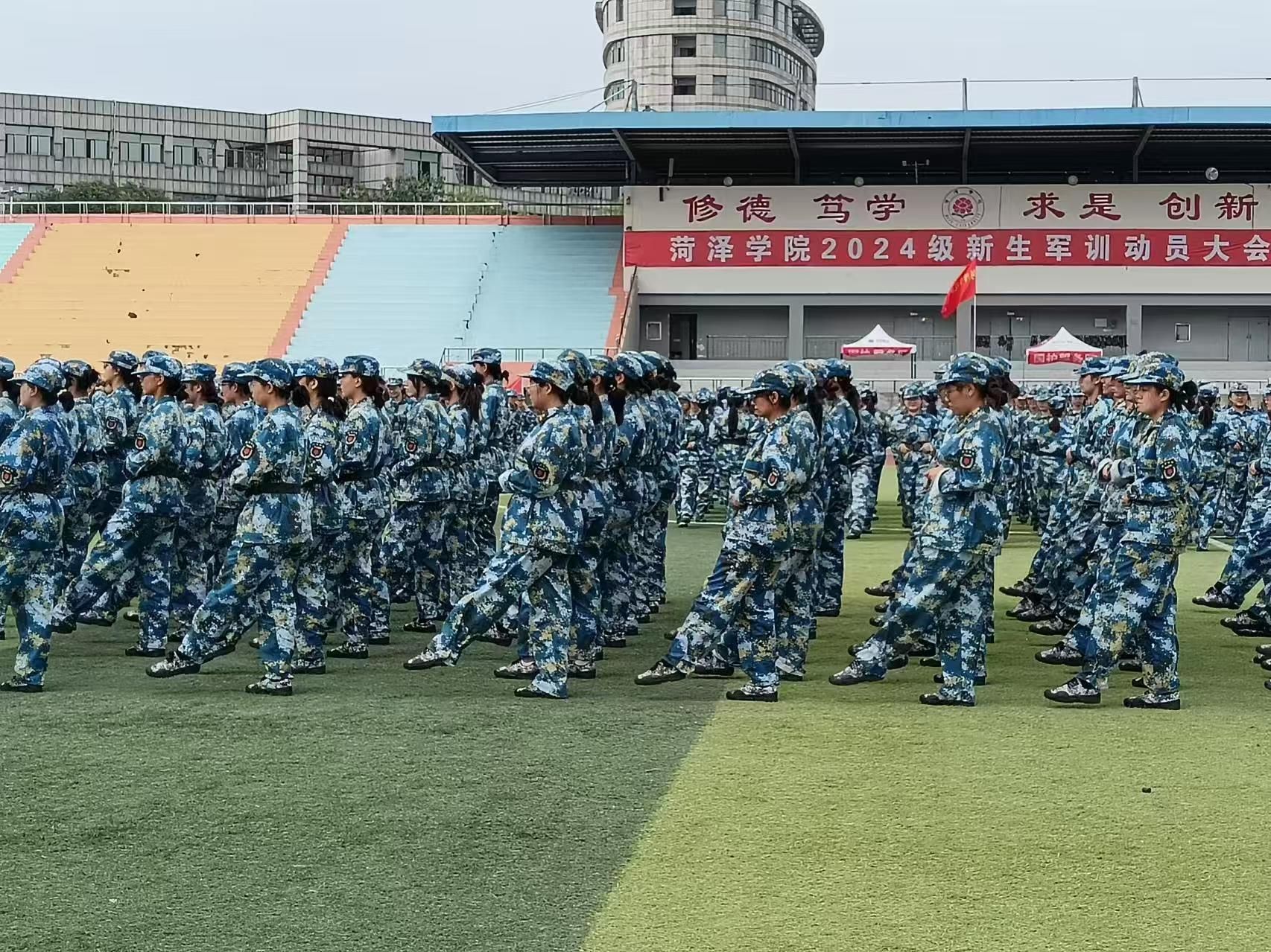 军训踢正步不仅锻炼了同学们的身体素质,还提高了队列组织纪律性。在烈日炎炎的夏日,身穿迷彩服、头戴军帽的同学们身姿挺拔,脚步铿锵有力,仿佛每一步都踏出了青春的节拍。