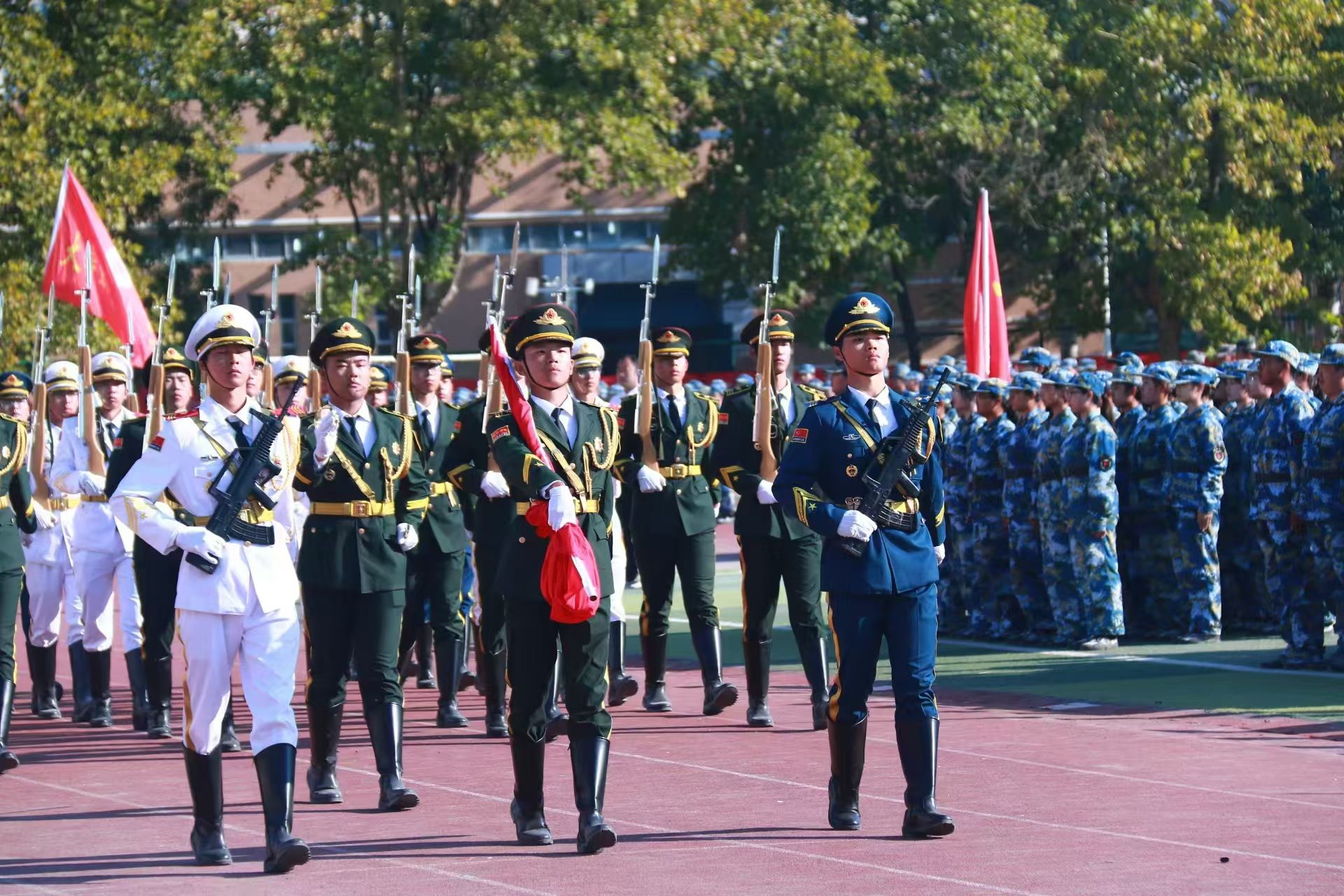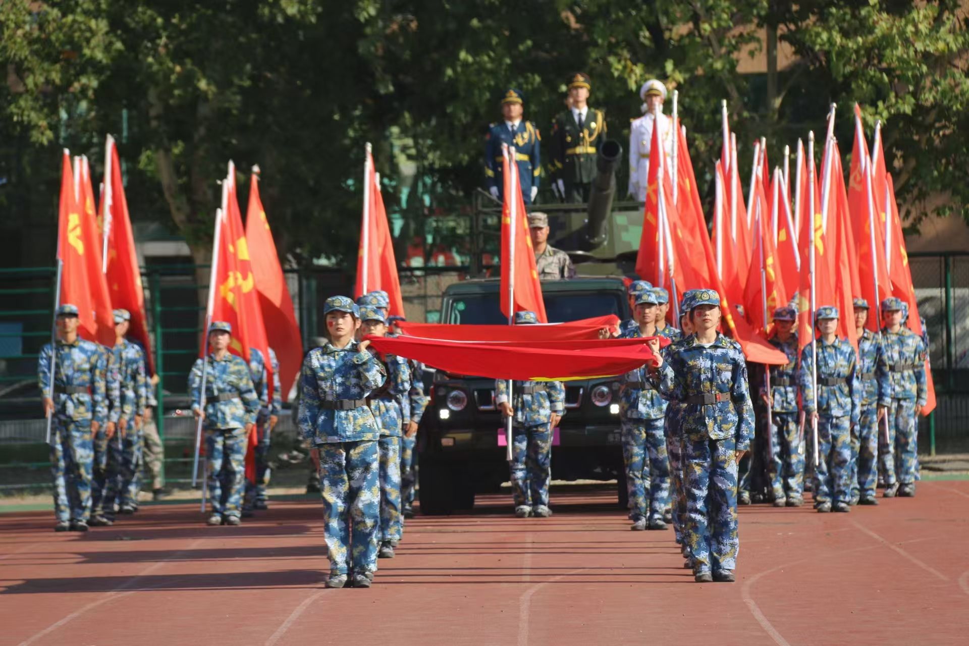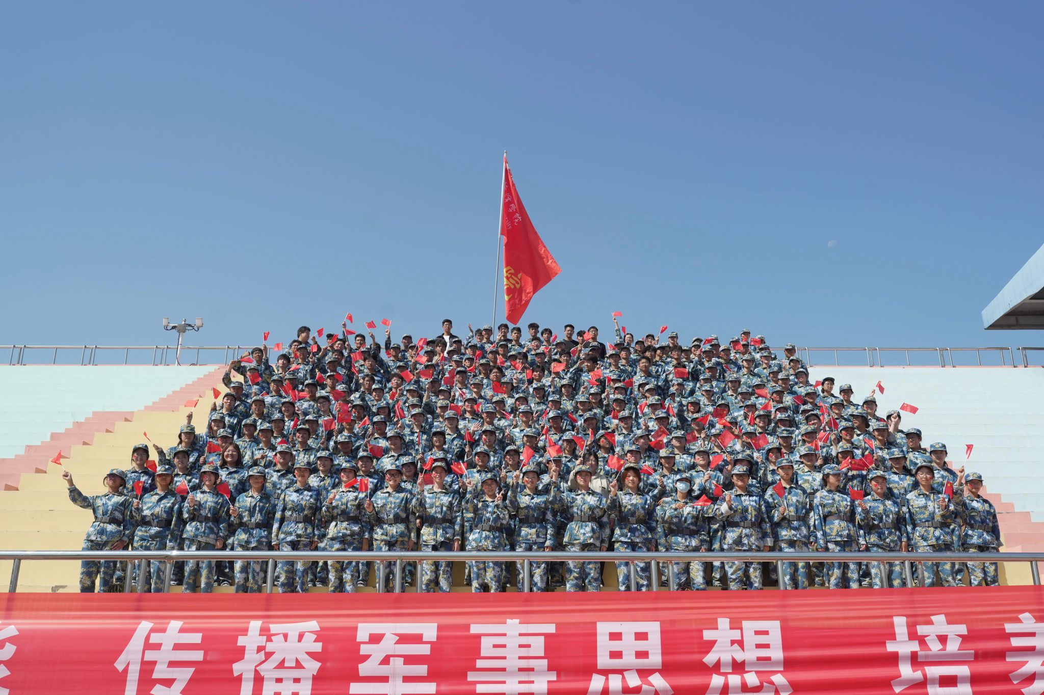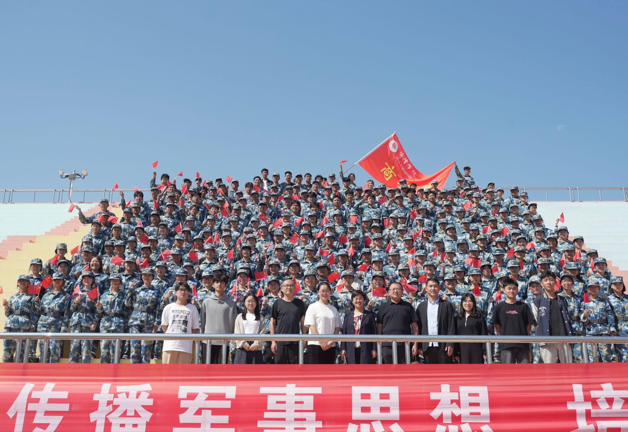 山河峥嵘,家国同心。大会最后,学校领导对本次军训做出总结并发表了热情洋溢的致辞,对新生们的到来表示了热烈的欢迎和衷心的祝贺。鼓励新生们珍惜大学时光,勇于探索未知,不断追求卓越,为实现个人梦想和学院的发展贡献自己的力量。