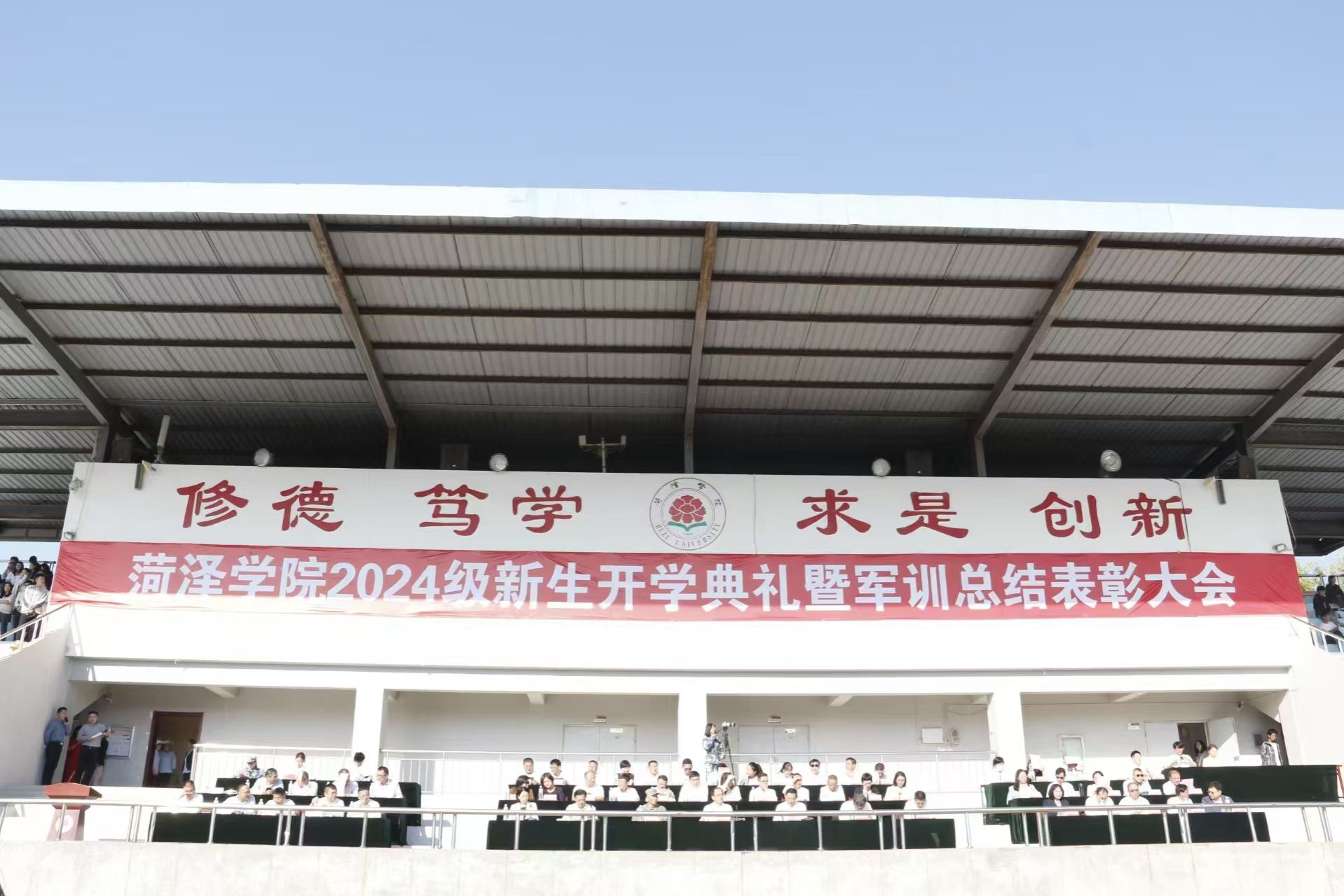青春无惧骄阳,磨练铸就成长,为期十四天的新生军训悄然而逝。为了检验新生军训成果,9月24日上午,bv1946伟德2024级开学典礼暨军训总结表彰大会在我校田径场隆重召开,伟德国际victor·1946源自党委书记尹鹏、党委副书记朱贺、学工办主任孙雪、全体辅导员和各新生班主任参与此次活动。