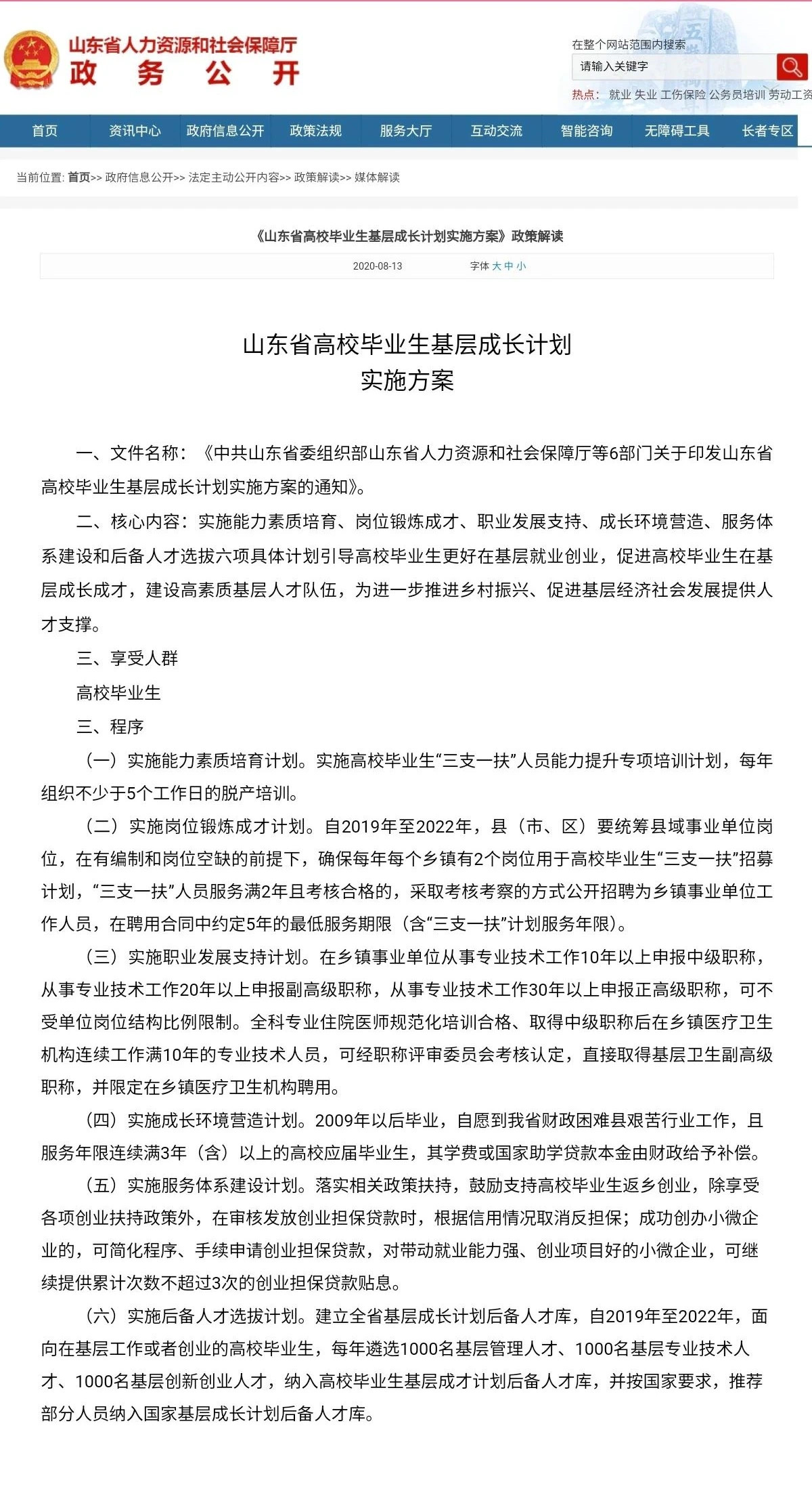 职面未来|《山东省高校毕业生基层成长计划实施方案》政策解读