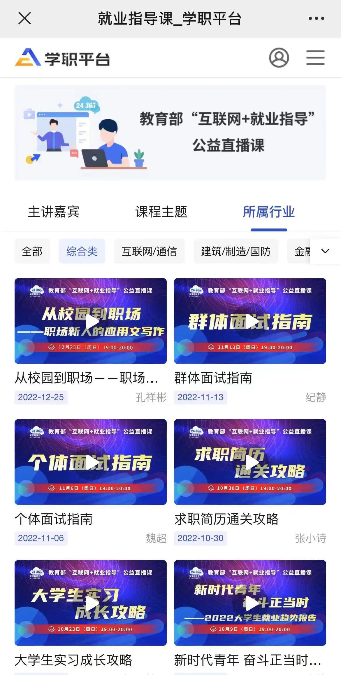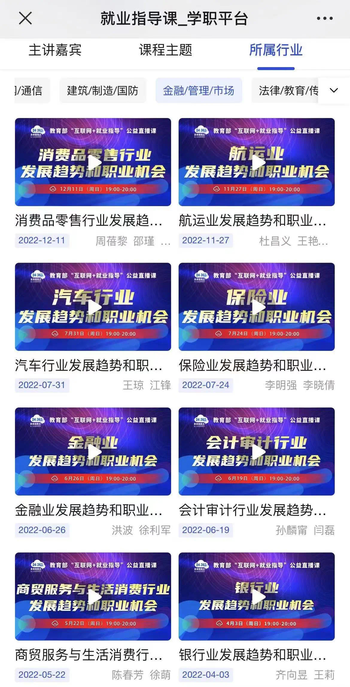 职面未来 | 大学生学业与职业发展平台:教育部“互联网+就业指导”公益直播课
