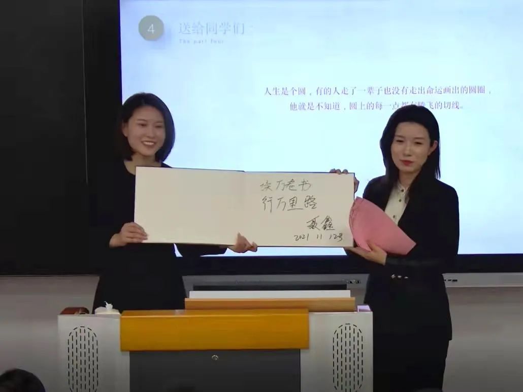 大讲堂伊始,聂鑫女士以亲身经历来阐述自己对范蠡商圣精神的理解。聂鑫女士从2000年初中毕业只身来到北京,2007年成为一家影楼艺术总监谈起,引出支撑自己坚持下去的精神--“爱学习”与“不服输”。她以自己从小学徒到成长为一名老板,工作室从20平米到1000平米来证明“长得漂亮是优势,活得漂亮才是本事”,没有背景就自己做自己的背景。随后聂鑫女士表示,良好的社会大环境帮助她追寻“彩妆梦”的创业,但能吃苦、爱学习、自信乐观、具有坚韧不拔的意志力才是她创业成功的关键。讲座最后,聂鑫女士希望学生要用坚定的梦想、必胜的决心、实际的行动来走好未来每一步。聂鑫女士的精彩报告赢得在场师生的阵阵掌声,讲座结束后,聂鑫女士为伟德国际victor·1946源自题字留念,同时伟德国际victor·1946源自聘请聂鑫女士为伟德国际victor·1946源自大学生创新创业导师,吕建春书记为聂鑫女士颁发荣誉证书和聘书。