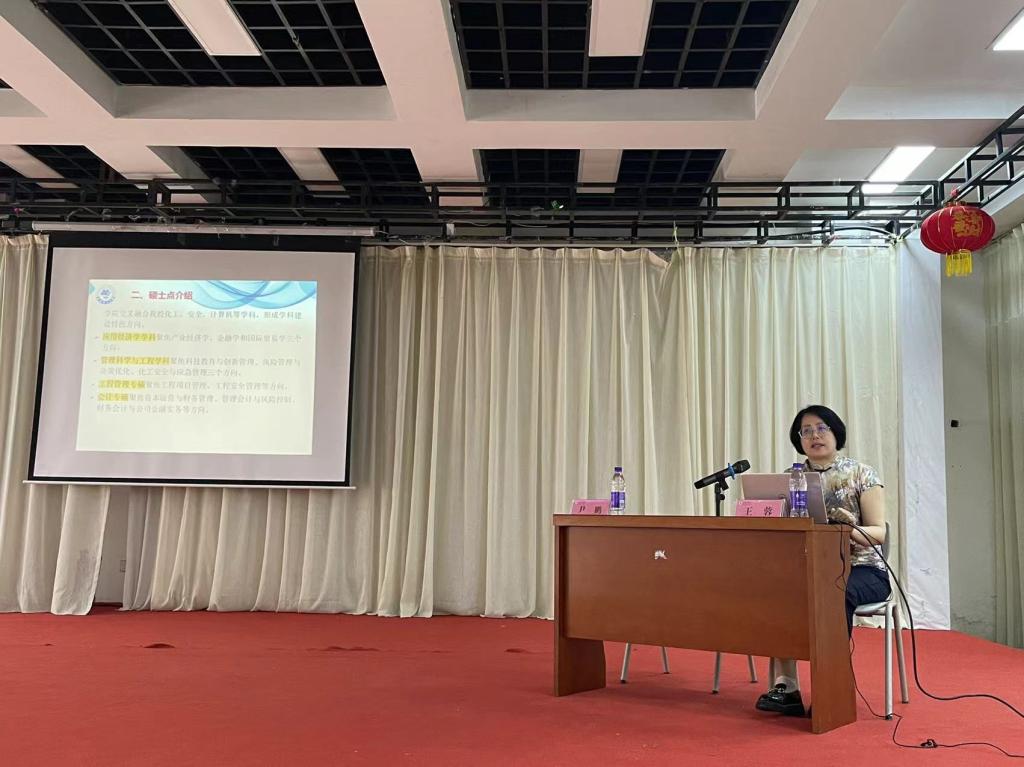 会上,王蓉院长围绕沈阳化工大学经管学科的师资队伍、科研水平、研究方向、学科带头人等方面做了全面、系统的介绍,充分展示了学院底蕴深、平台好、师资强的优势。同时根据经济管理学科研究生历年录取条件,深入解读招生政策,帮助同学们做好备考规划、明确考试目标。宣讲内容丰富、阐释精准,有很强的指导性和针对性。